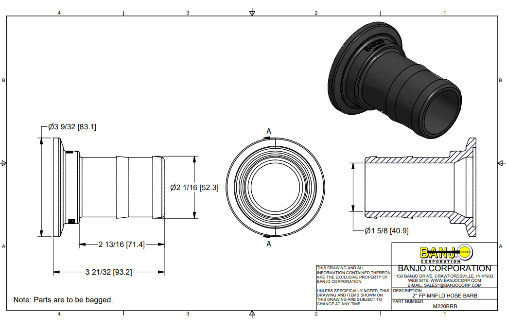 2" Manifold Flange x 2" Hose Barb - Polypropylene