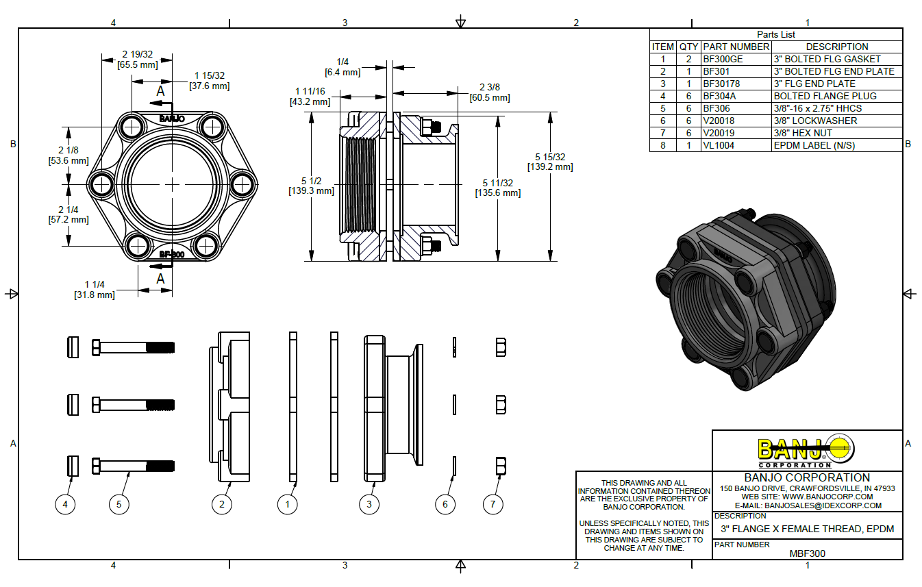 3" Flange x 3" Female Thread Bolted Tank Fitting
