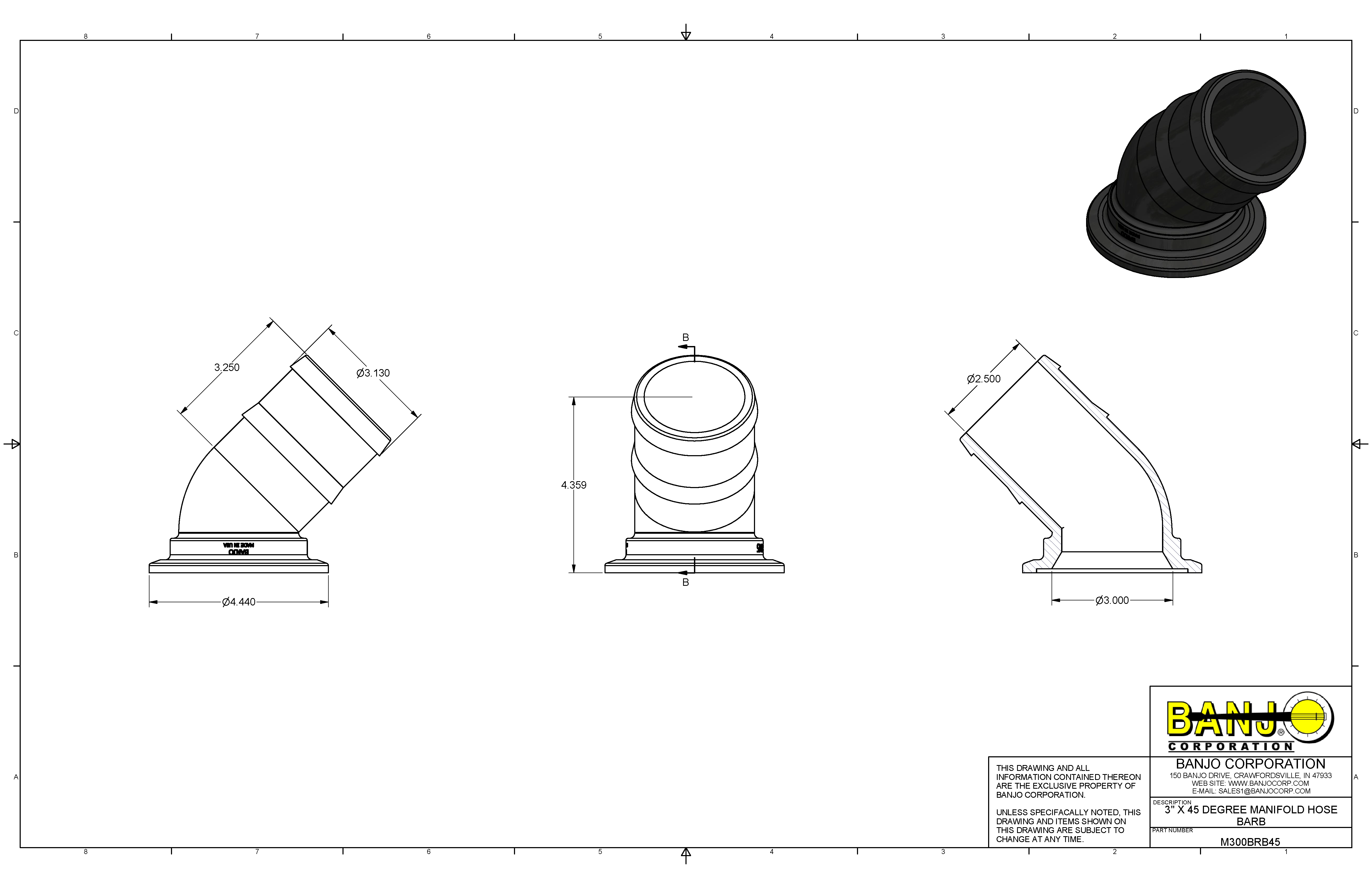 3" Manifold Flange x 3" 45° Hose Barb Elbow