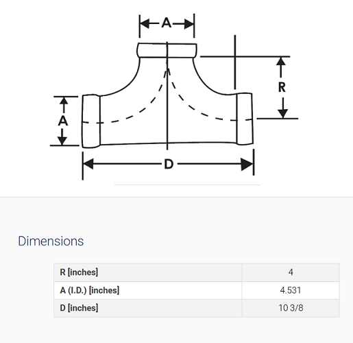 4" Short Radius Weldable Tee - 316 Stainless Steel