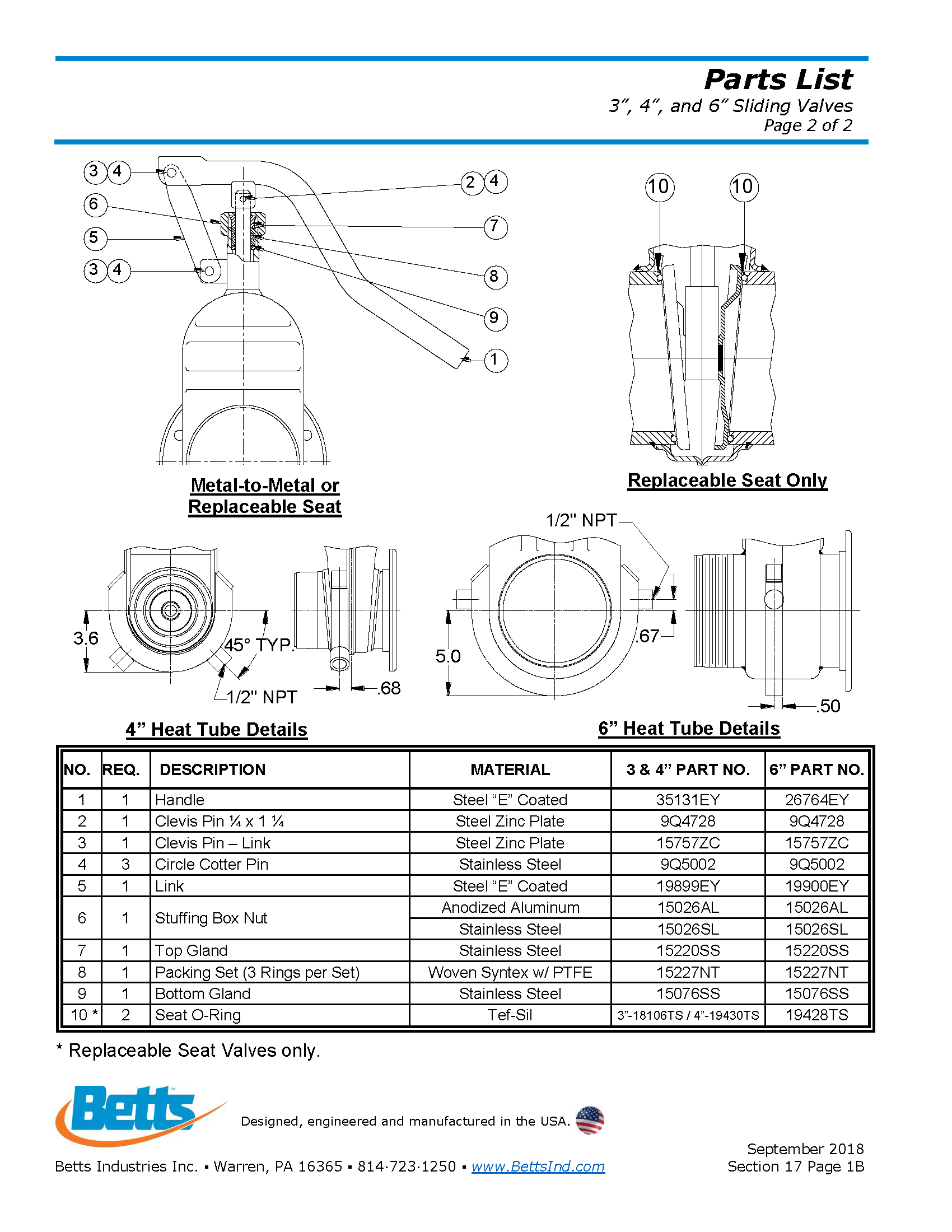 - Betts Steel Sliding Gate Valve 6" Info - Betts Sliding Valve Parts List |