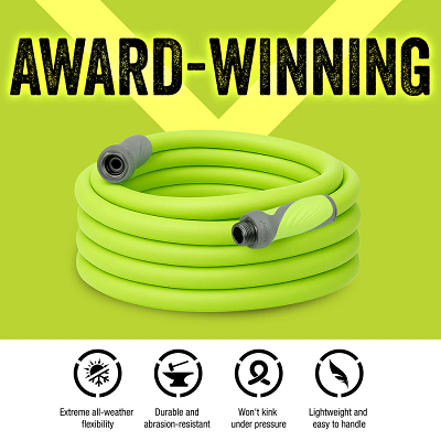 The Flexzilla SwivelGrip Garden Hose makes it easier to work around your home and lawn by eliminating twists that occur when uncoiling a hose. Conventional garden hoses can trap coils that tighten into kinks as you move across the yard, but the SwivelGrip allows the hose and grip to rotate independently so the coils release naturally, easily and effortlessly. The large, comfortable gripping surface on both ends of the hose lets you use the power of your entire hand to make tight connections easy. Engineered with a lightweight Flexible Hybrid Polymer that lays flat and eliminates kinking under pressure.