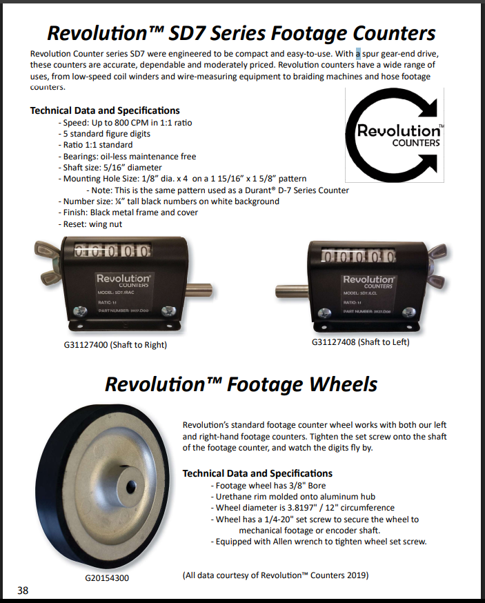 Revolution™ Counters' SD7 Series footage counters were engineered to be compact and easy-to-use on sewer cleaning, jetting, combo and trailer jetting equipment. With a spur gear-end drive, these counters are accurate, dependable and moderately priced. Revolution counters have a wide range of uses, from low-speed coil winders and wire-measuring equipment to braiding machines and hose footage counters.