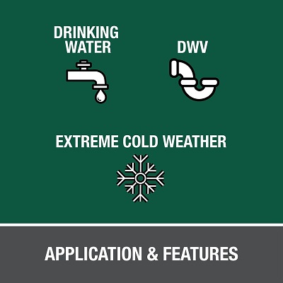 The Medium Bodied Fast Set Clear Cement is recommended for potable water, drain, waste and vent applications. It is formulated to perform in all weather conditions from -15°F to 110°F and applies easily with included in-lid dauber. This clear, medium bodied, fast set cement can be used to solvent weld all schedules and classes of PVC pipe and fittings up to 6 in. diameter with interference fit.