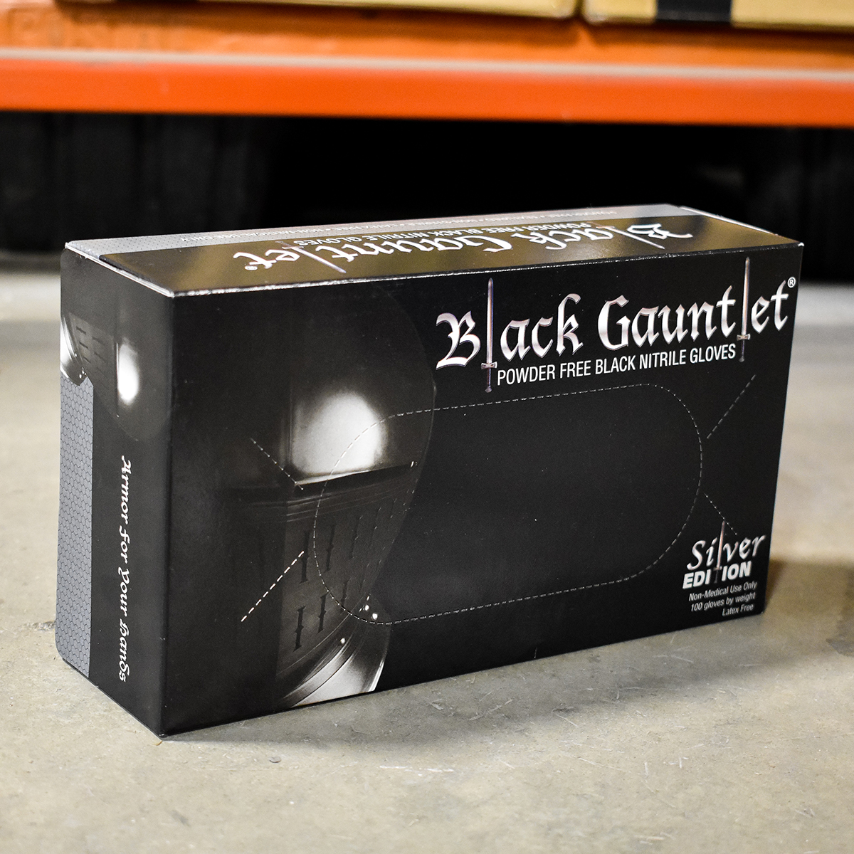 Do you work in jobs that involve tools, machinery, and harsh chemicals? Are you searching for a disposable glove that will not quit on you but will get down and dirty as you do? We have the perfect black nitrile disposable glove that will meet all your demands! Slip your hands into the ShuBee® Black Gauntlet® Silver Edition nitrile gloves. The rich black color of the gloves hides dirt, grease, and grime, allowing workers to maintain a clean, professional look. They are also specifically formulated to hold up against abrasions, cuts, and tears. These nitrile black disposable gloves contain no allergy-causing latex proteins and are resistant to petroleum-based products. More importantly, these industrial-grade gloves can be summed up into three words: strong, durable, and comfortable.