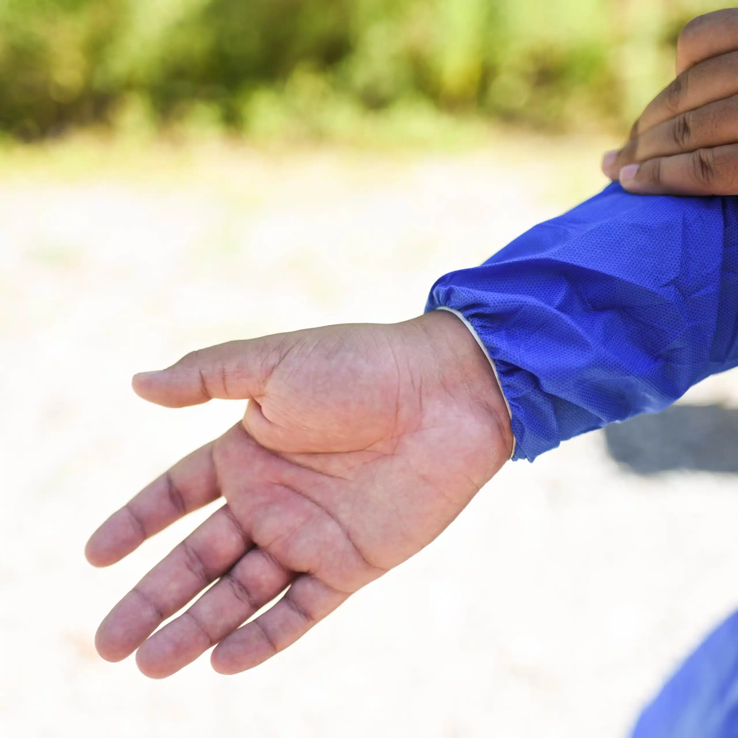 Pro Tip: Put your shoe covers on before stepping into the coverall to avoid snagging on the pant legs.