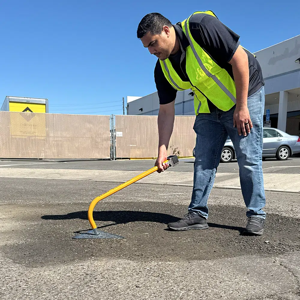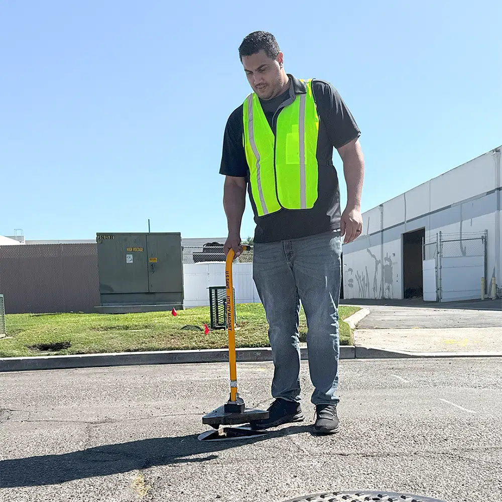 Step 1: If needed, strike the center of the water or valve box lid with the solid metal end of the Bo Bop